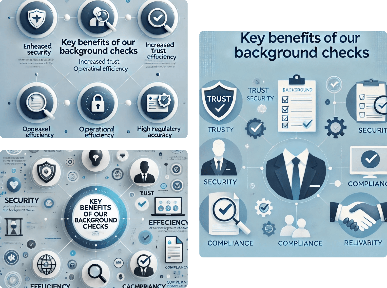 Our background checks provide thorough insights, ensuring informed hiring decisions, enhancing workplace safety, minimizing potential risks, and protecting your business’s reputation while complying with legal and regulatory requirements.